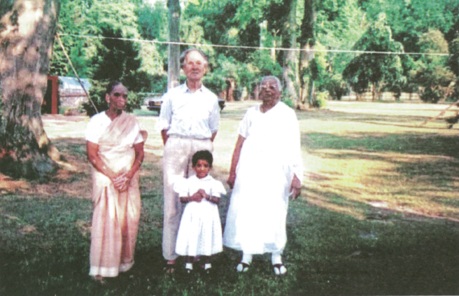 படம் 18: Bathதிலுள்ள Joanனுடைய குடியிருப்பில் எடுக்கப்பட்டது. இடமிருந்து வலம்: சந்தசுவாமிகள், திரு.சிவயோகஈஸ்வரன், Joan னுடைய மகள் (மத்தியில்), Sir. Peter Ramsbotham, Joan